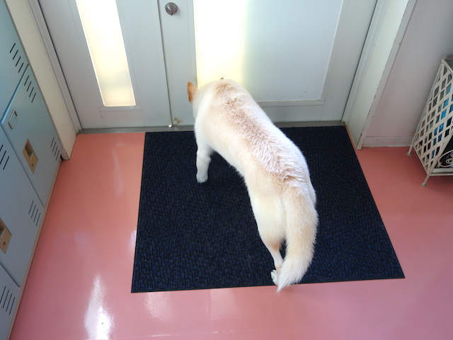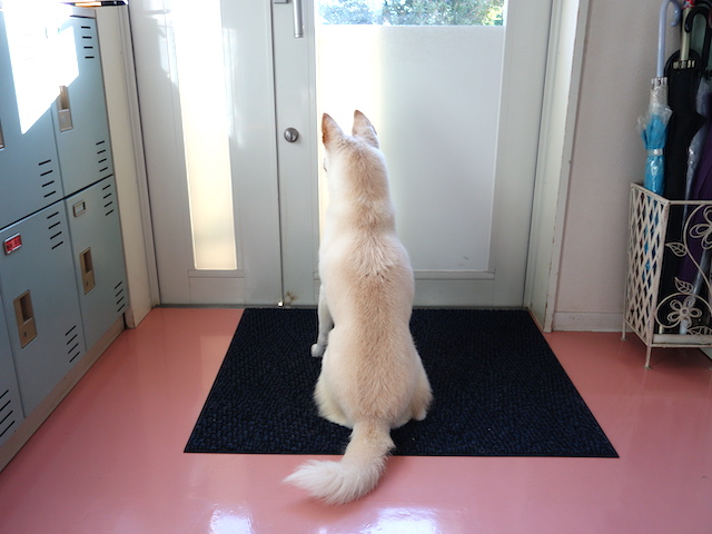 チェックが終わると姿勢正しく座り、ドアをじっと見つめます。