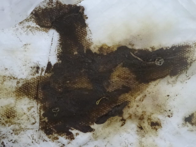 虫の確認をするためにすり潰してみると