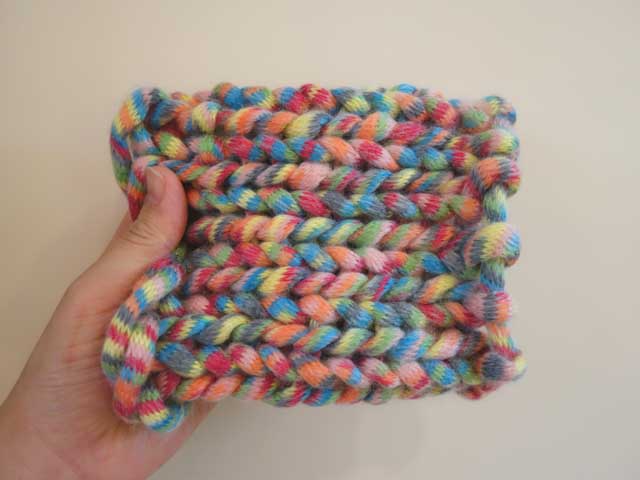 中に綿が入っている編み糸で作ったので、とっても暖かいんです!