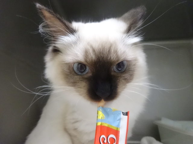 おやつにちゅーるを持ってきていたので、あげてみると。