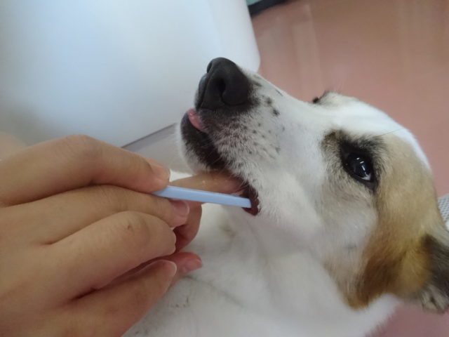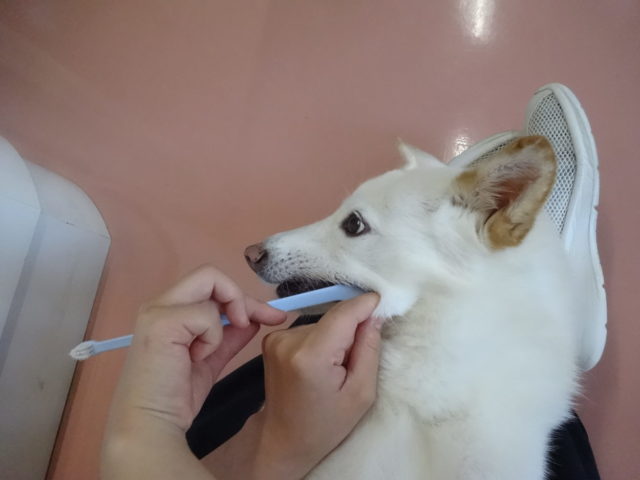 シロちゃんはアゴがずれているので歯に汚れがたくさんついていました!