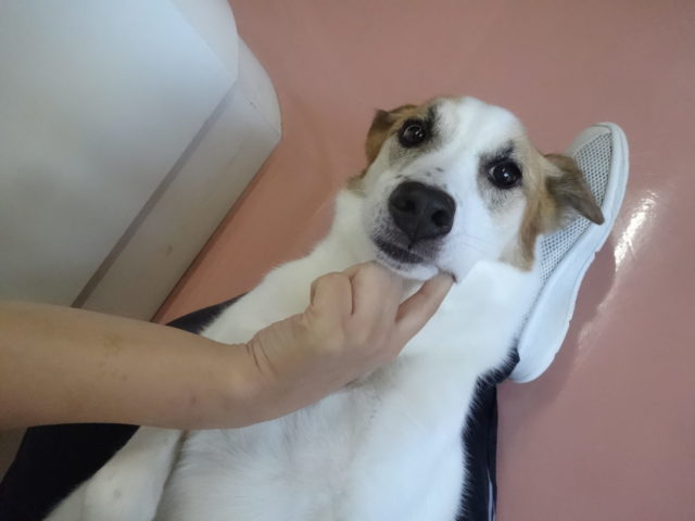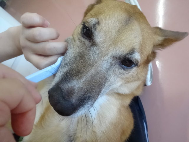 今日は休診日で色々と作業をしている間に、病院犬のシロ・ロイス・ルーサーに歯磨きをしてあげました!