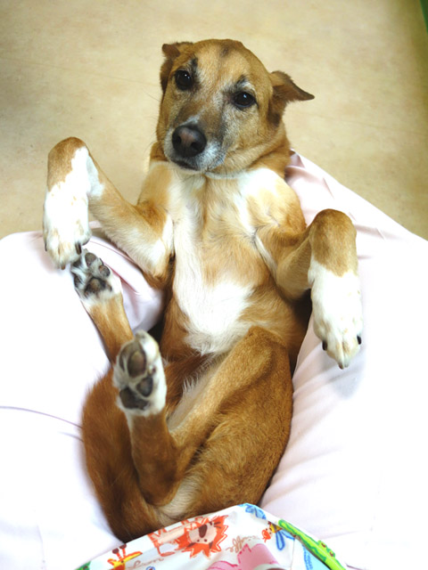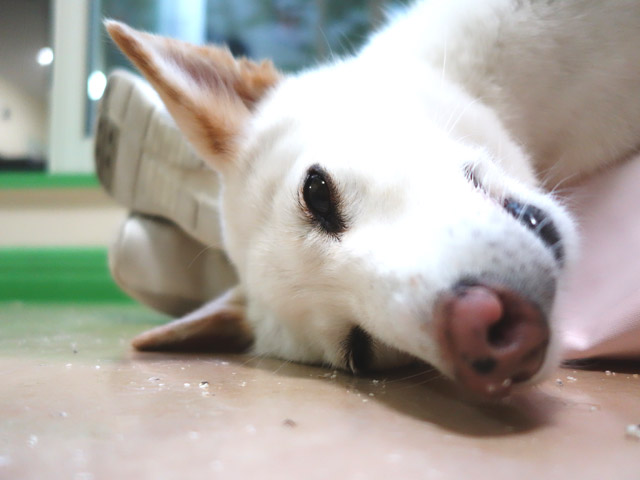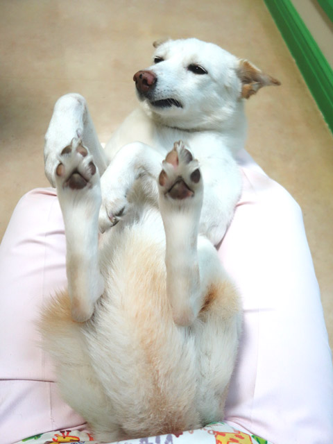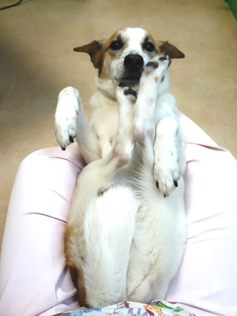 病院犬たちは、このスタイルが一番落ち着くらしく