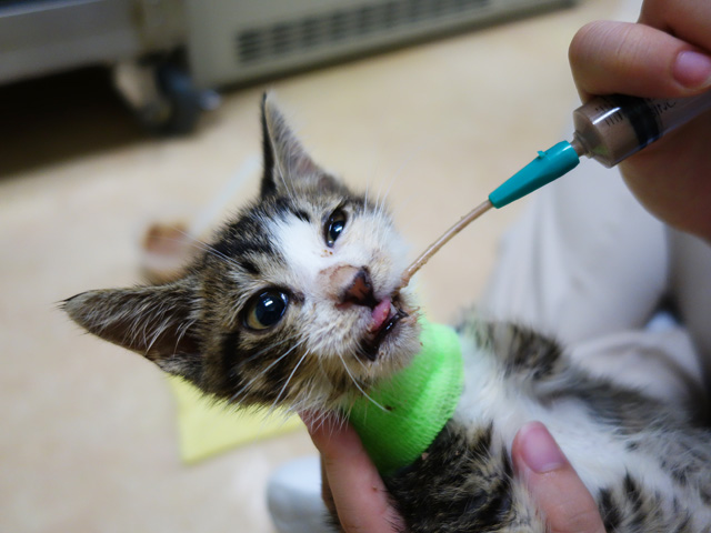 それが今日は、もっとご飯くれと自分からシリンジに顔を寄せて