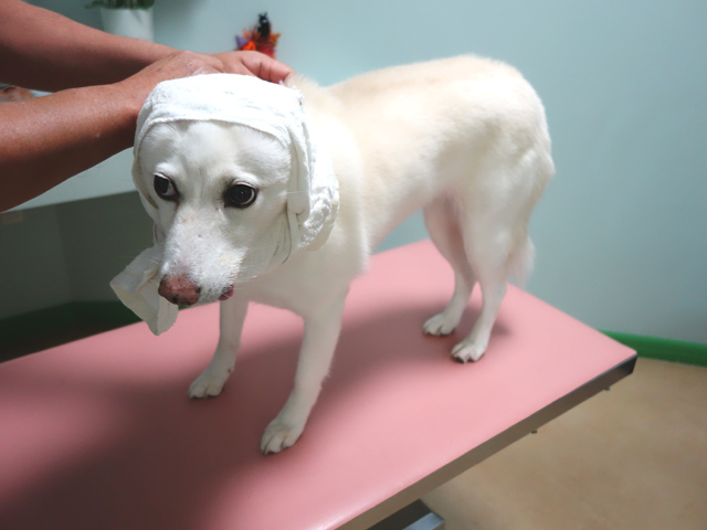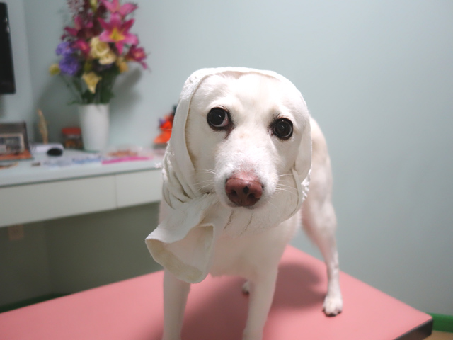 無事にオシッコ検査をして、オシッコ内に細菌が確認されたので抗生剤のお注射を打つことに