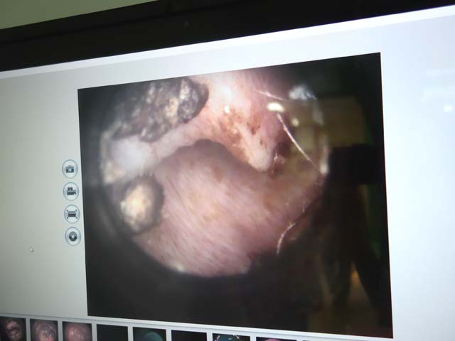 歯についた歯垢をとって顕微鏡で歯周病菌の確認もします
