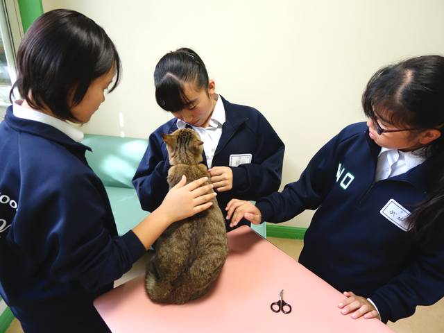 午前中は診察の見学、診察室の清掃、検査のお手伝いなどをしてもらいました!