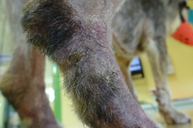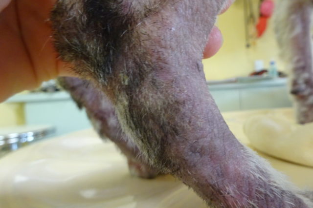 続いては皮膚が痒くて、カサブタができてしまった子です。