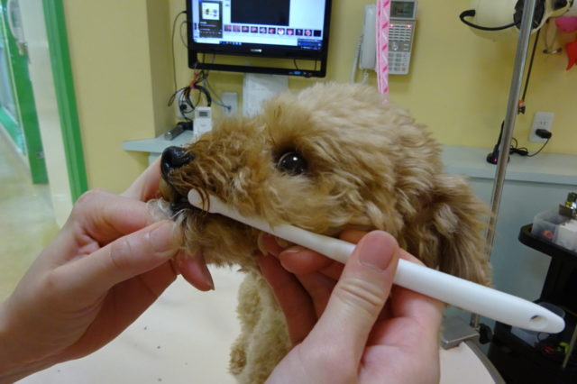 写真でわかるように、とーっても大人しくて奥歯までしっかりと磨かせてくれました☆