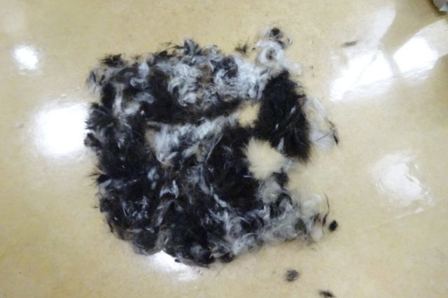 カット途中、下を見るとすごい量の毛が落ちていました!!(これも一部!!もっともっとカットしました!!)